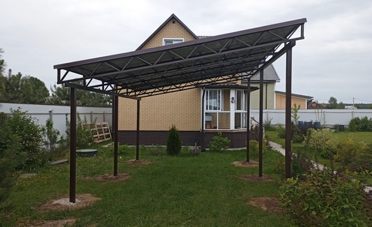 Односкатный навес с крышей из профнастила для установки на загородном участке Арт-702